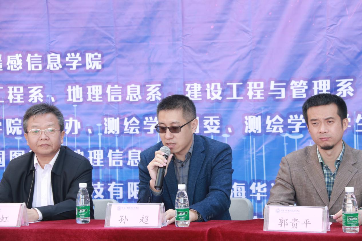 莅临现场的领导嘉宾有广东国图勘测地理信息有限公司总经理孙超,武汉天宝耐特科技有限公司董事长禹良先生,上海华测导航技术股份有限公司广东分公司总经理李东兵,广州天派空间科技有限公司总经理郭贵平,广州南方测绘科技股份有限公司广州分公司副总经理满永利,广州一飞航空科技有限公司执行董事、总经理高阳,广州宏拓测量仪器有限公司经理曾令鑫先生,学校科研处处长何军拥,对外交流合作处处长黎明虹,测绘遥感信息学院党总支书记兼院长速云中,测绘遥感信息学院副院长李益强、测绘遥感信息学院党总支副书记李元。