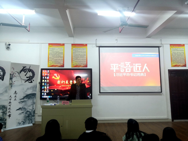 为深入学习贯彻习近平新时代中国特色社会主义思想,弘扬中华优秀传统文化,涵养社会主义核心价值观,建设 “学习型、服务型、创新型”三型党支部,创新组织生活模式,工商管理学院党群服务中心于2019年12月4日晚在实训楼514室举办了第37期读书会《平“语”近人——总书记用典》,此次活动面向我院预备党员,活动由我院党总支副书记谢宏祥老师主讲。