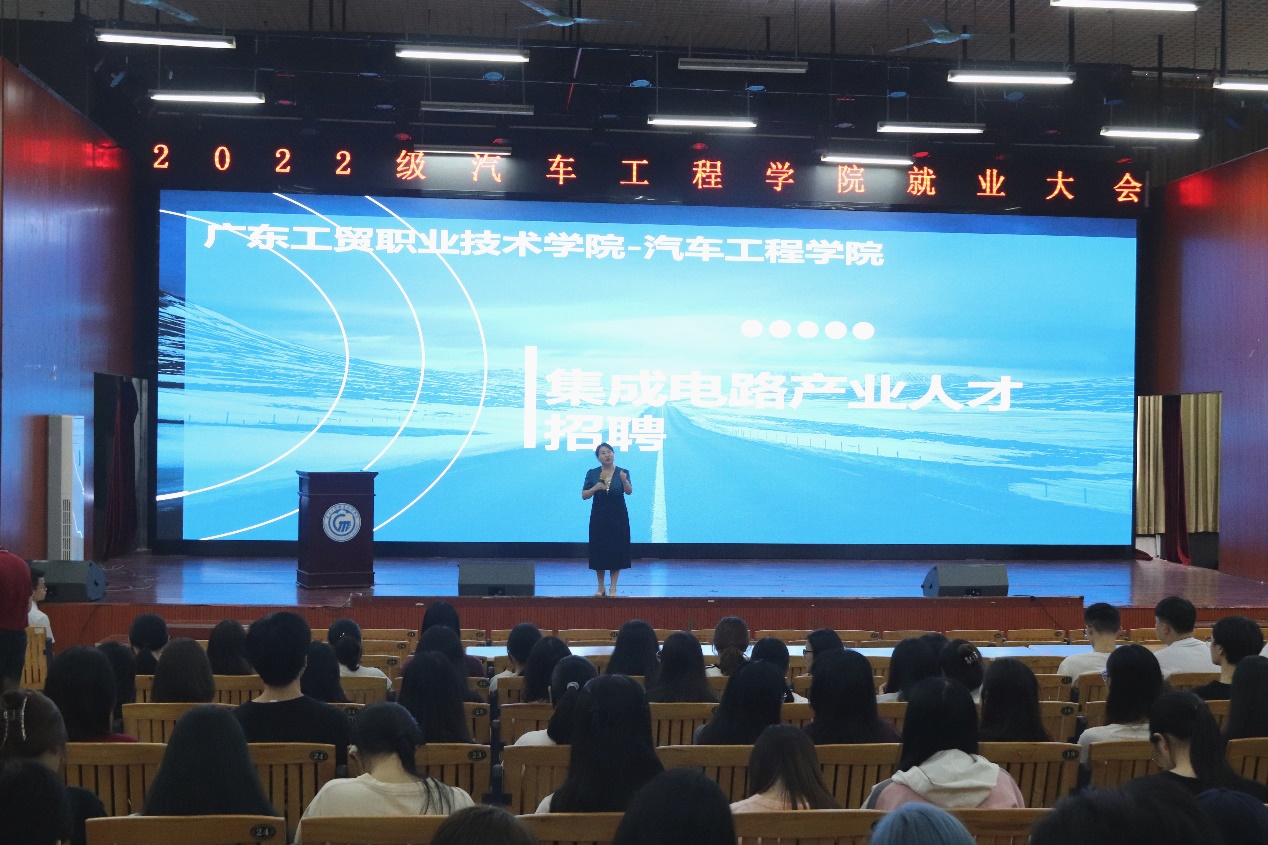 会上,企业代表通过播放企业宣讲片和PPT讲解的方式向同学们详细讲述集成电路行业的发展前景、产业现状、企业文化、企业就业环境、就业岗位等基本情况,让学生对行业有了更加全面和深入的了解。