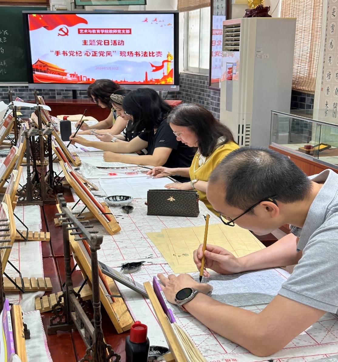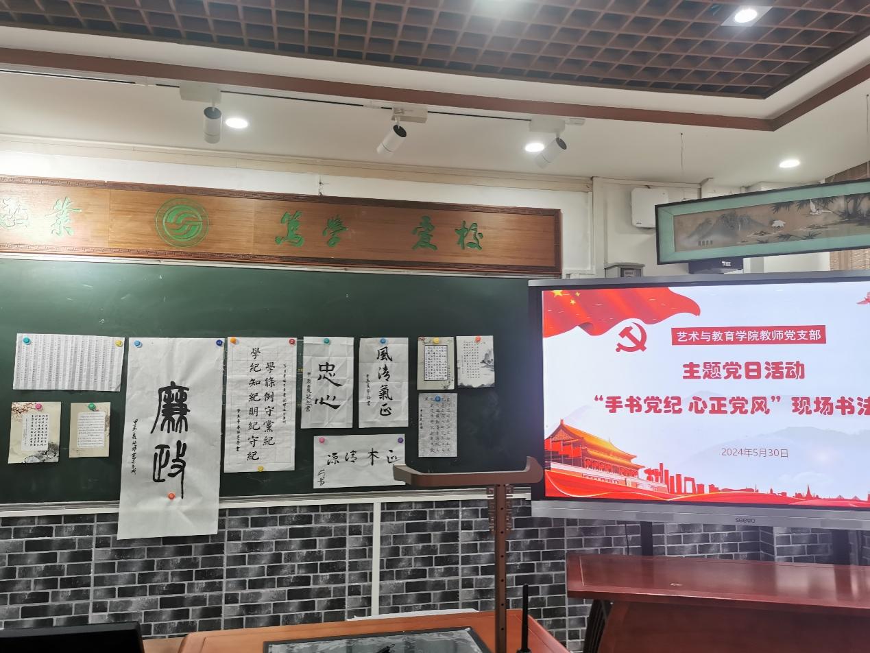 5月30日下午,艺术与教育学院教师党支部在爱校楼翰墨轩召开党纪学习教育主题党日活动,深入学习《中国共产党纪律处分条例》,进一步严明政治纪律和政治规矩,全面提高党员的纪律意识。会议由教师党支部书记区翠梅主持,教师支部全体党员参加了会议。