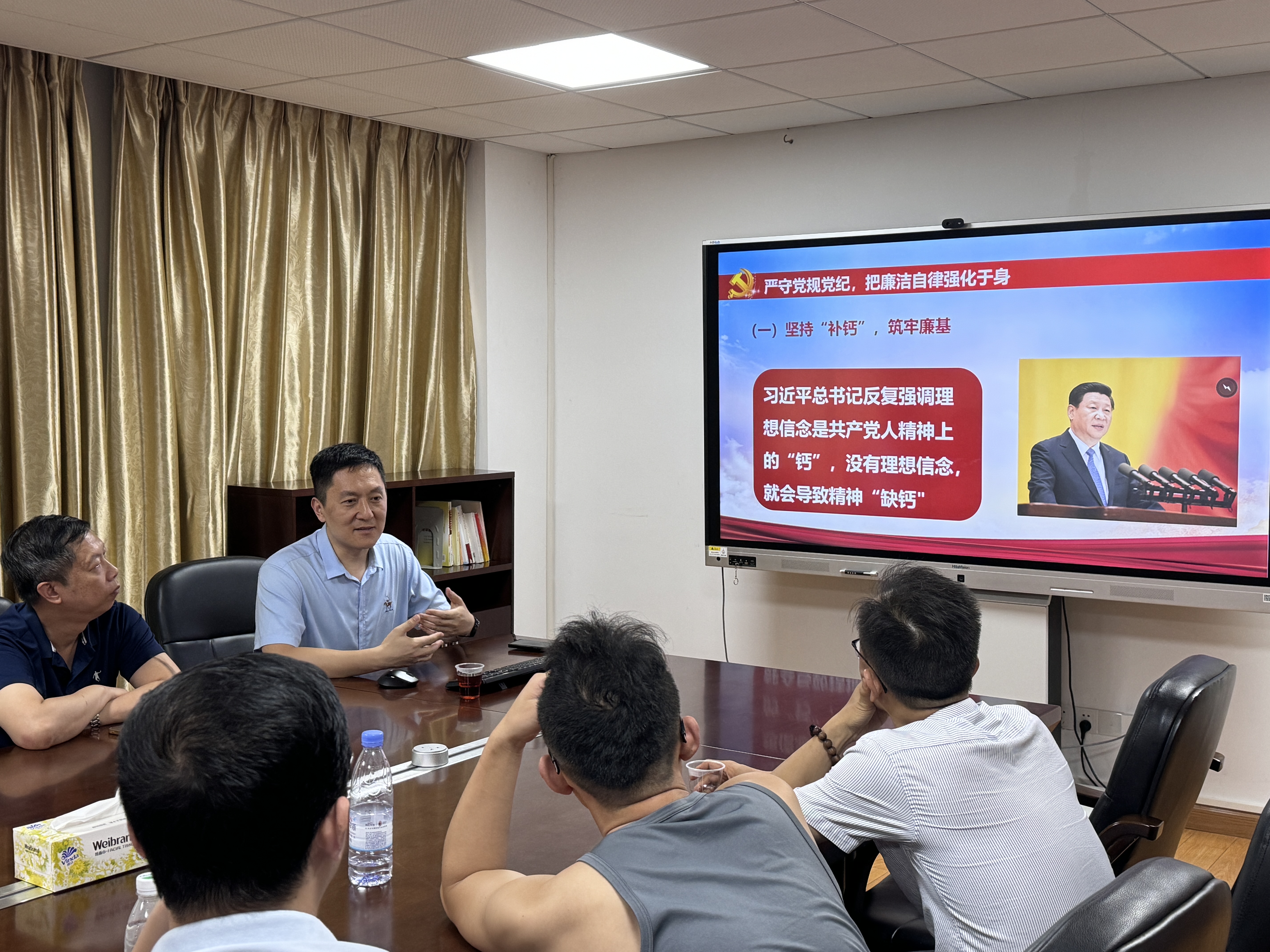为深入贯彻落实全面从严治党要求,推动党纪学习教育走深走实,强化党员干部党性修养和纪律意识,6月18日下午2点,机电工程学院教师第一党支部在天河校区第一会议室开展党纪学习教育专题活动,教师第一党支部全体党员参加会议,会议由教师第一党支部书记原波主持。