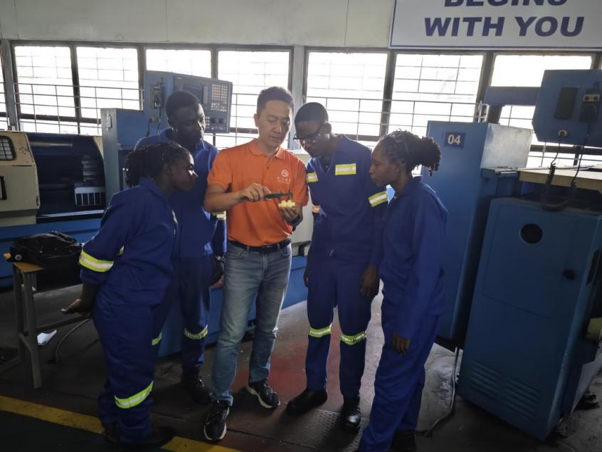尽管历经近20小时的长途飞行,原波教授抵达后即刻以饱满的精神投入到紧张而充实的工作中。他根据中赞职院的教学计划,并结合对赞比亚当地师生的前期调研,充分发挥中赞职院广东工贸分院的特色,为分校重型设备维修专业的师生量身打造了专业培训计划。此次培训聚焦机电一体化和数控加工两大核心领域,致力提升当地师生的专业技能和实际操作能力。
