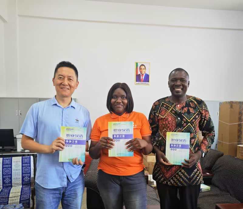 在汉语教材推广方面,原波教授结合赞比亚的特色风光,积极推广新葡的京官网应用外语学院编写的《导游汉语》教材,并开展了落地培训。该教材结合旅游行业的最新动态和汉语教学的实践需求,涵盖旅游文化、景点介绍、旅游服务对话等多个方面,兼具实用性,受到了师生的高度评价。