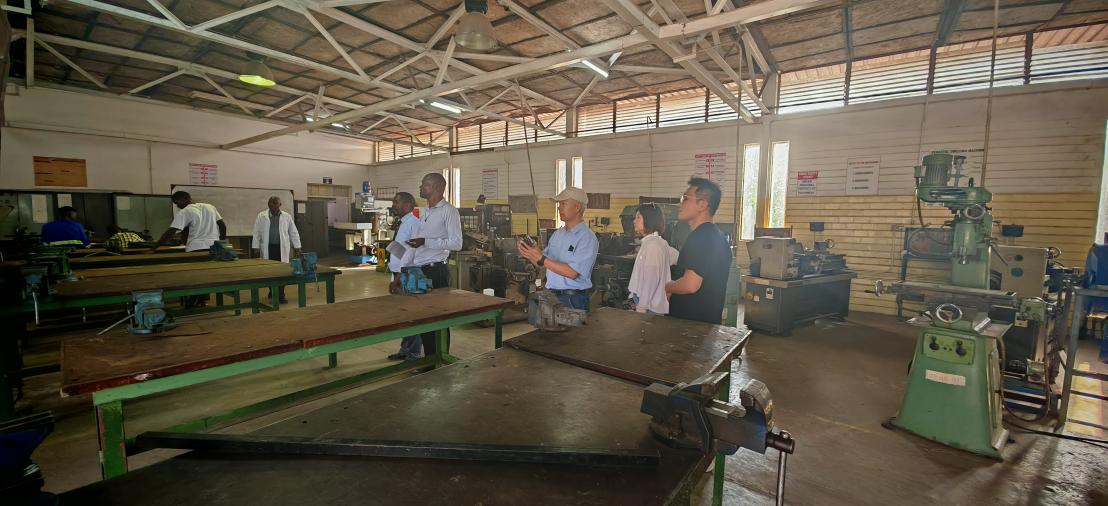 此外,为拓宽中赞职业技术学院产教合作的视野,10月20日,魏波博士会同中色卢安夏有限公司党委书记黄荣满、中赞职业技术学院院长助理王楠以及中赞职业技术学院院长Jorick Yamvwa,共同前往赞比亚职业技术培训中心(TVTC)开展调研活动。在交流过程中,双方围绕职业教育课程体系构建、实训基地运营管理以及本土化师资培育这三大核心议题展开了深入研讨。TVTC分享了其依据当地矿业、基建产业需求设置课程,以及依托实训基地开展技能培训的成熟经验,调研团队详细了解了TVTC在服务当地产业发展、推动技能培训普及方面的实践做法。魏波博士介绍了新葡的京集团8814vip“三维能力整合”培养模式以及中赞订单班的实践成效。此次调研不仅搭建起两校合作的桥梁,更在资源共享、模式互鉴方面达成了多项共识,为后续开展跨校联合培养、实训资源共建等合作奠定了坚实基础。