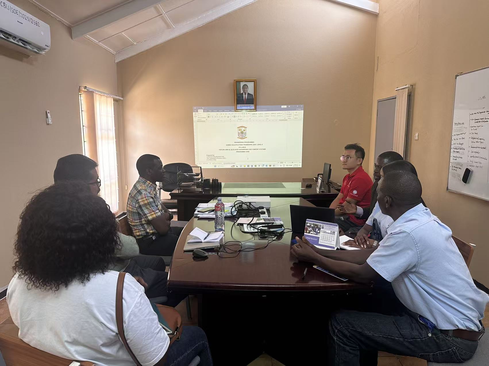 10月29日,广东工贸魏波博士携手中赞职院院长Joric Yamvwa一行,赴赞比亚铜带省大学与副校长Paul Chisale、机械学院院长G.Senthil Kumaran教授展开专项研讨,围绕订单班核心的重型设备维修专业三年制课程标准申报,敲定课程体系、教学内容及考核标准,为人才培养标准化筑牢根基。此前,魏波博士已到赞比亚中资企业调研,针对性构建“专业技能+中文+驾照”三位一体培养体系,创新“企业工程师驻校教学+一线实训”模式。