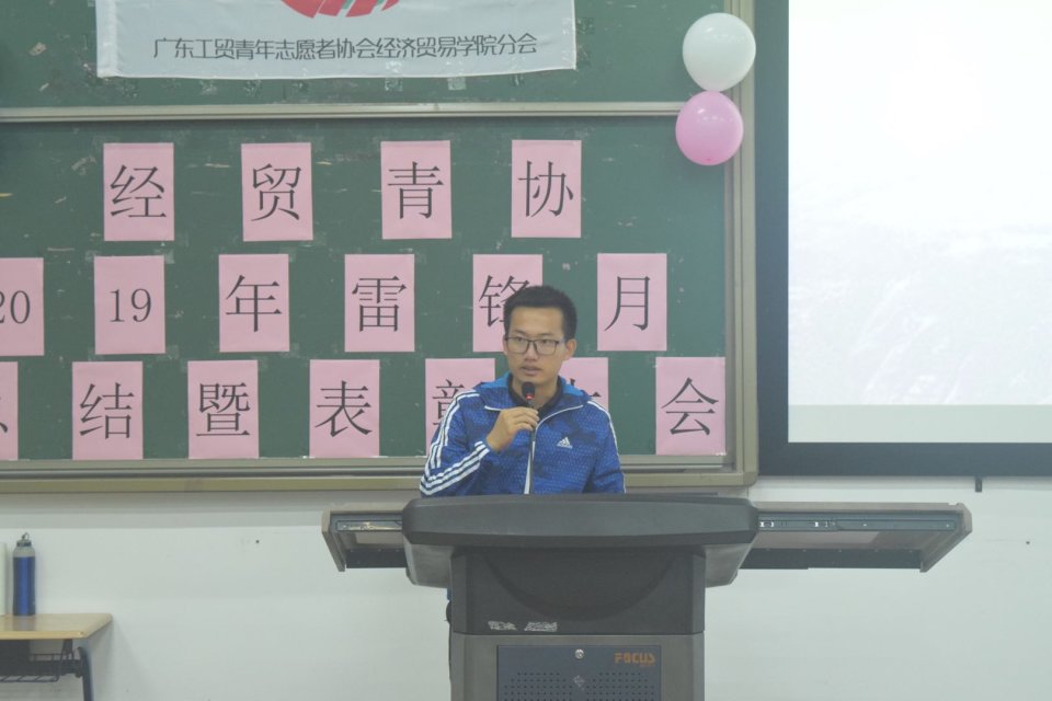 晚上19:00,大会正式开始,首先由主持人曾海龙介绍本次大会邀请的嘉宾,分别有经济贸易学院青年志愿者分会会长章少重、副会长钟达成、经贸学院团委、学生会副主席张振馀、学生党支部青年部部长王茜以及各学院青协代表。