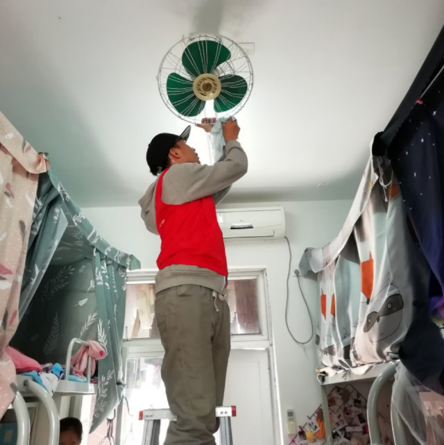 3月12日,在宿舍楼8、9栋开展女生宿舍风扇清洗活动,使女生宿舍灰蒙蒙的风扇焕然一新的同时,也让学生们感受到做志愿活动的快乐。