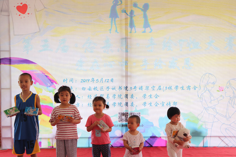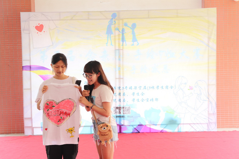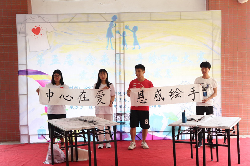 爱是至高无上的,母亲的爱更是无私的。在母亲节这个特殊的节日里,为了增强同学们的感恩意识,提高同学们的社会责任感,经济贸易学院在新葡的京集团8814vip白云校区3栋宿舍架空层举行以“爱在心中,手绘感恩”为主题的第五届“念亲恩”手绘T恤大赛。出席本次活动的嘉宾有:测绘遥感信息学院冯臻佳、汽车工程学院陈宏伟、机电工程学院史旭、经济贸易学院黄小奇、张薇薇,学生会副主席纪泽杰、姚棉佟。同时,“亲子区”这边有一群可爱的小朋友也参与了此次活动。