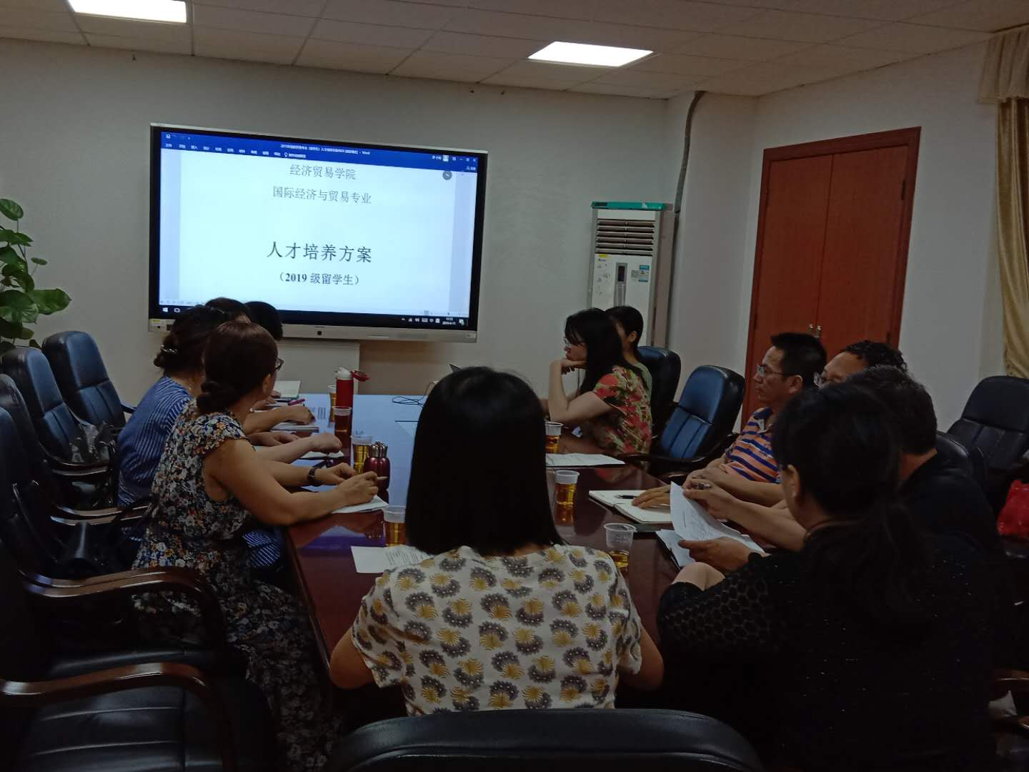 其次,教务处赵文龙处长提出,在加强学生文化课程知识学习的同时,也需要兼顾学生德育、体育等方面的发展。希望把中国概况、中国文化课程列为留学生的必修课,并加强思想政治类课程的学习,并进一步提升学生的综合素质。并体现一定的专业特色。会中,国贸教研室的教师们就留学生人才培养方案完善展开了激烈的讨论。