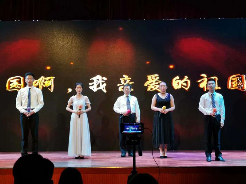 为庆祝新中国成立70周年并全面贯彻落实党的十九大精神,以习近平新时代中国特色社会主义思想为指导,进一步激发广大青少年的爱国热情,坚定跟党走中国特色社会主义道路的理想信念,党委宣传部于2019年6月13号晚7:00在白云校区演艺中心开展中华经典朗诵会活动,经济贸易学院的“青春飞扬队”参加了比赛,朗诵队伍成员有:李艇老师,曾亚青,温晓利,余文斌,卓振威,谢玉彬,党总支副书记龚云、学工办主任黄小奇、辅导员章少重、吴海英也参与了比赛。
