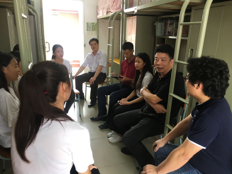 为了贯彻落实省委教育工委《学校领导干部深入基层联系学生工作的实施方案》的文件精神,推进学校立德树人根本任务。2019年6月14日,学校党委书记汤才到白云校区子勤书院5号楼815宿舍走访,一同走访的有学校党办主任黄雄志,经济贸易学院党总支副书记(主持工作)王坤明,党总支副书记龚云。