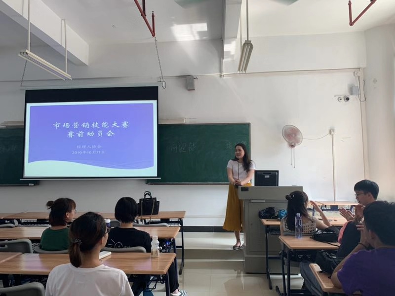 2019年10月11日中午,经济贸易学院市场营销专业教师廖文芳和黄卉老师在白云校区2-403开展了市场营销专业技能大赛赛前动员会。