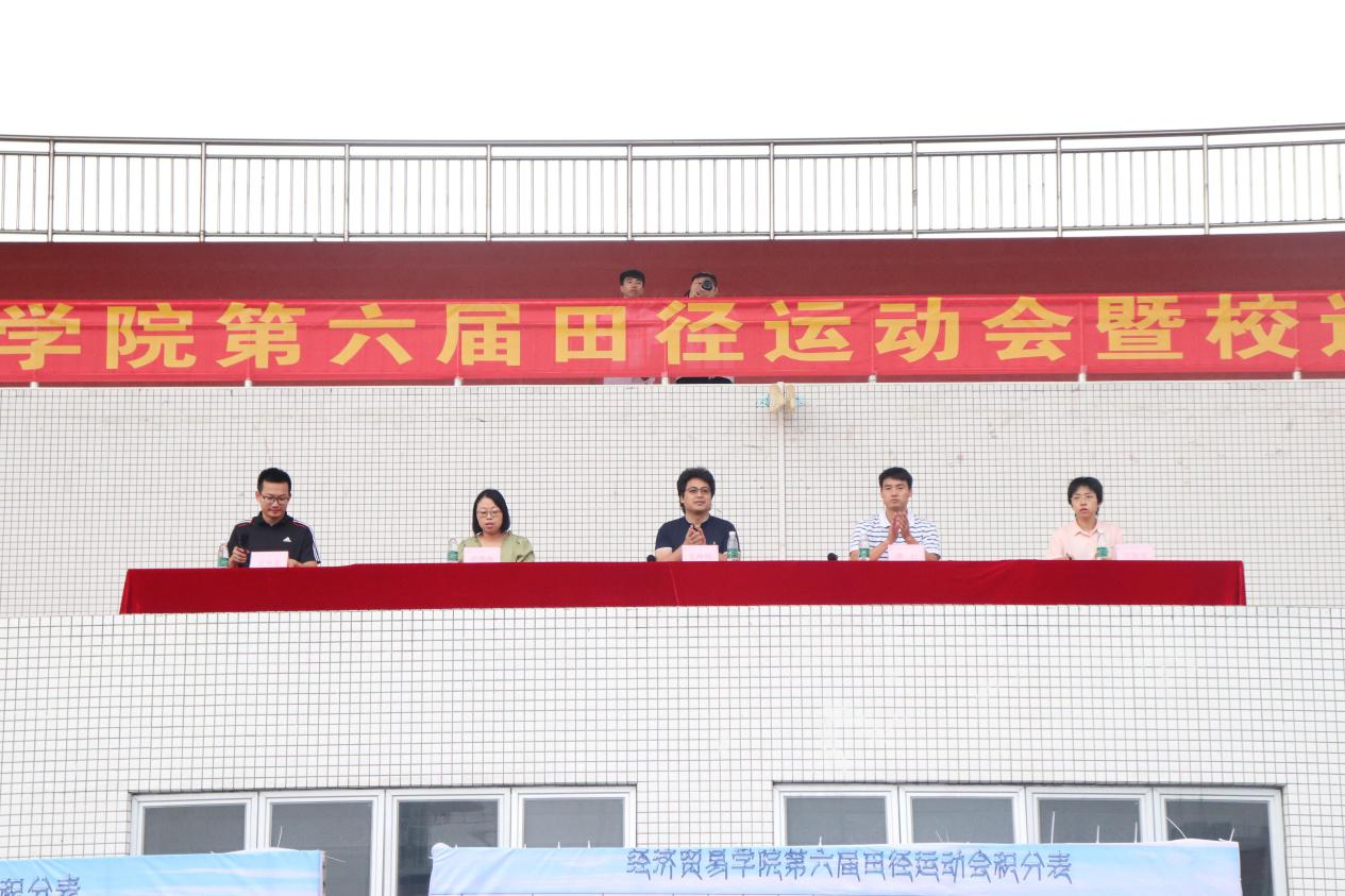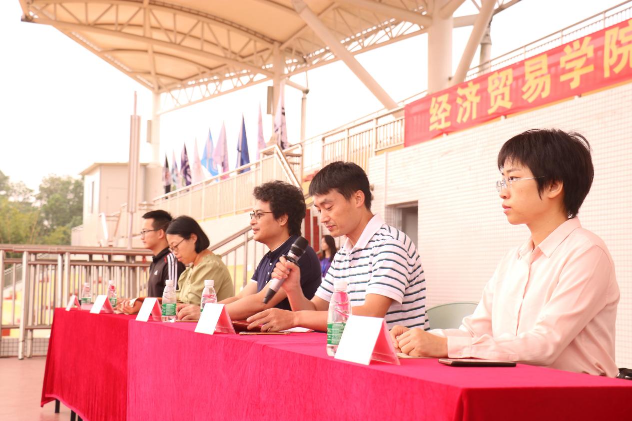 为调动我院同学参与体育运动的积极性,进一步推动我院学生体育竞技水平的提高,促进班级广大同学相互了解、增进友谊,营造一种积极拼搏,团结向上的竞争氛围,从而使广大同学在德、智、体方面全面发展,更好地推动我院各项事业的发展。10月26日,经济贸易学院2019年第六届田径运动会在新葡的京集团8814vip白云校区田径场隆重举行。党总支副书记(主持工作)王坤明、党总支副书记龚云、经济贸易学院辅导员张薇薇、辅导员吴海英、辅导员章少重出席了开幕式。开幕式由章少重老师主持。