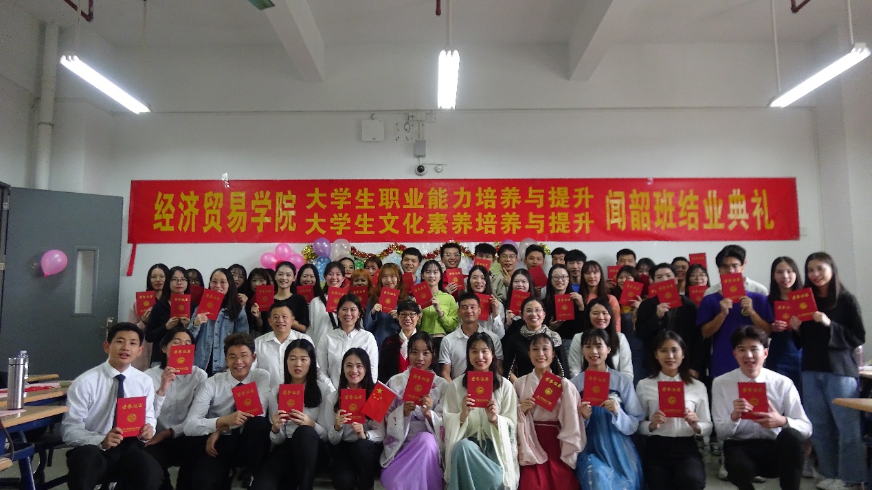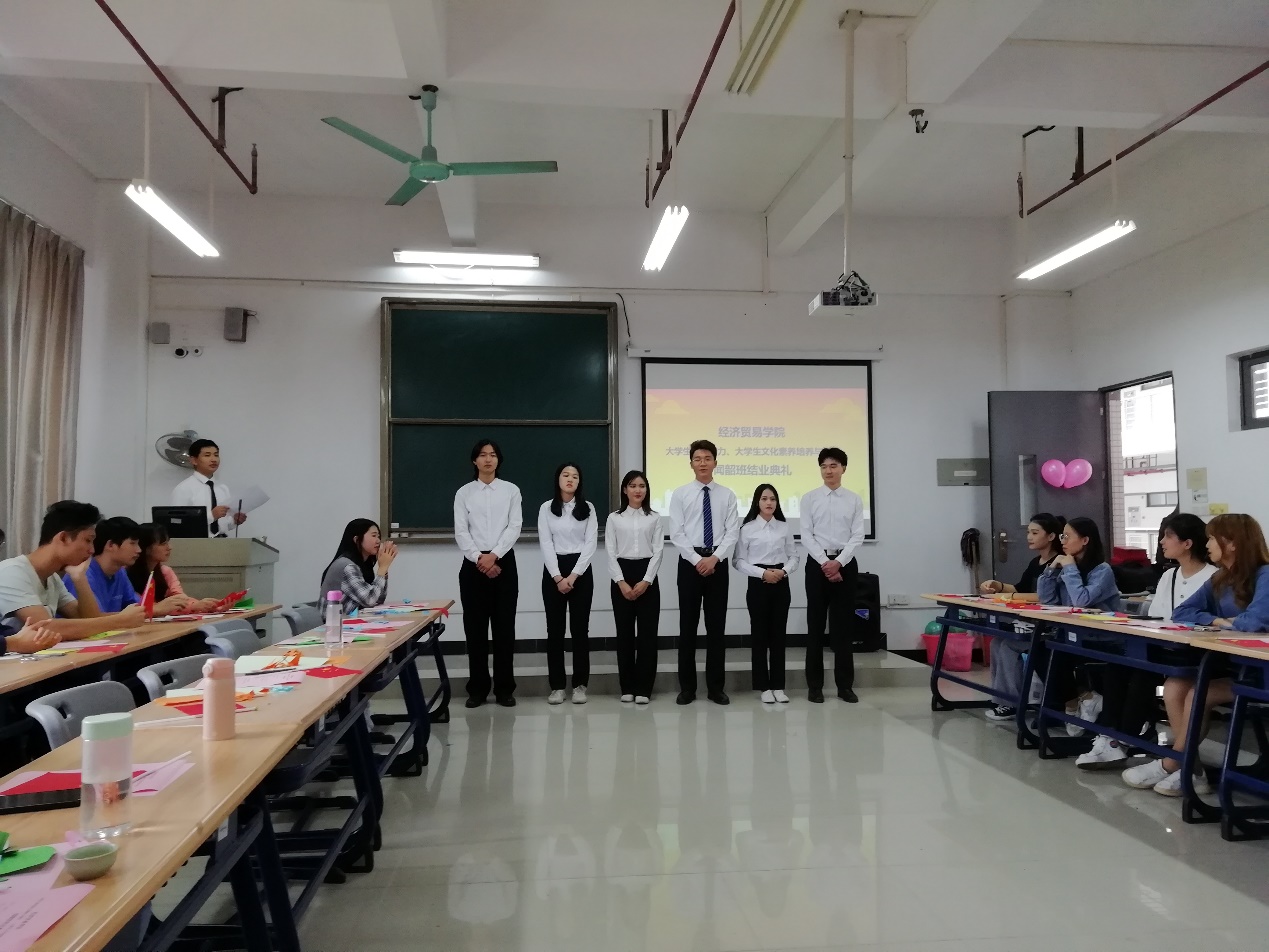 2019年10月31日下午,经贸学院“闻韶班”结业典礼仪式在明德楼1-514正式拉开了序幕,出席活动的有经贸学院院长邱秀芳、党总支副书记龚云、办公室主任邓彩云以及骨干教师李艇、刘佳珺,出席典礼的还有广州雇者品牌咨询有限公司高级培训主管冯玥怡女士以及闻韶班52名同学。
