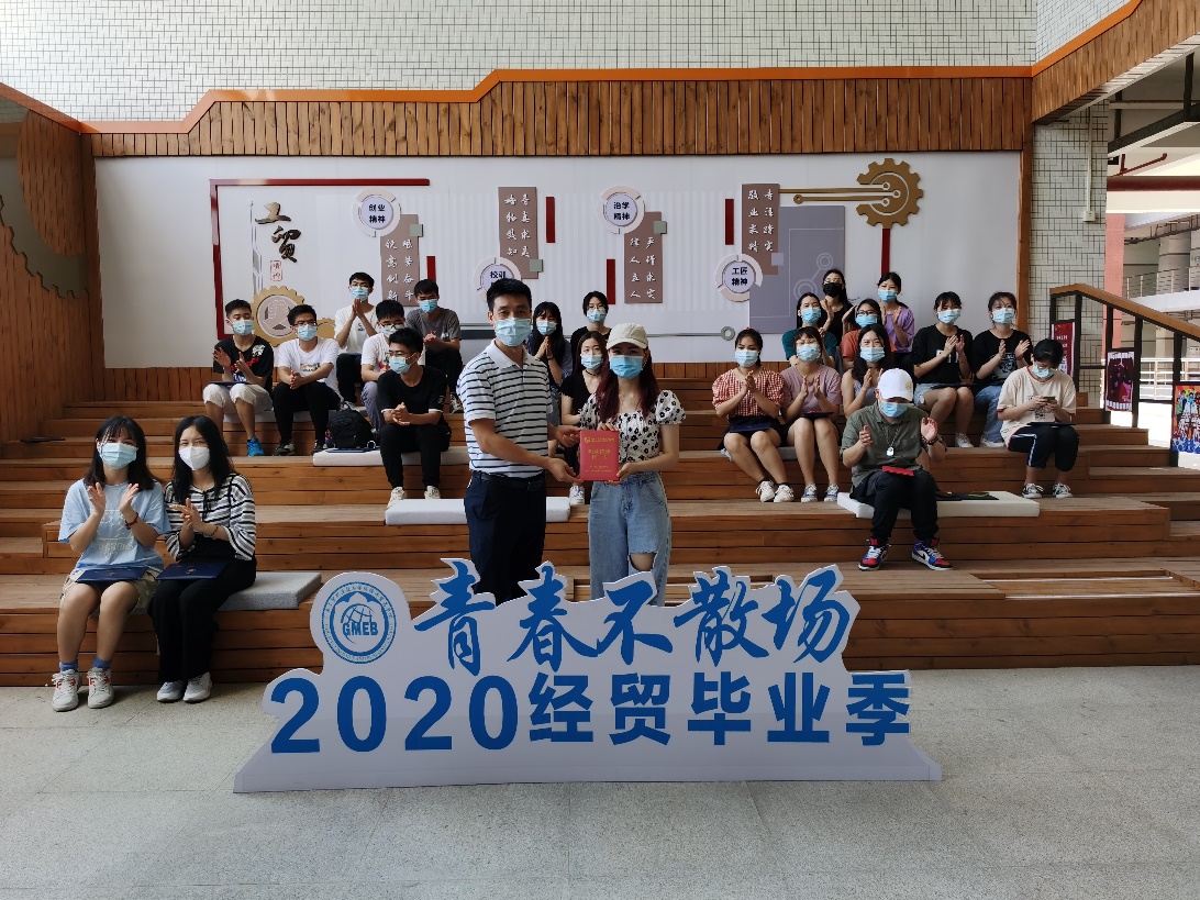 口罩挡不住一声声问候!一句句感恩!眼神掩饰不住师生见面的激动和喜悦!上午10时,一场特别的经贸学院2020届毕业典礼在“明德思政体验基地文化交流厅”举行。经贸学院党总支书记李繁、院长邱秀芳、副书记龚云、行政办主任邓彩云、学工办主任黄小奇、全体辅导员、以及全体毕业班班主任出席了毕业活动,为同学们颁发毕业证书和“优秀毕业生”、“工贸技师”荣誉证书,并为同学们送上祝福和期望!
