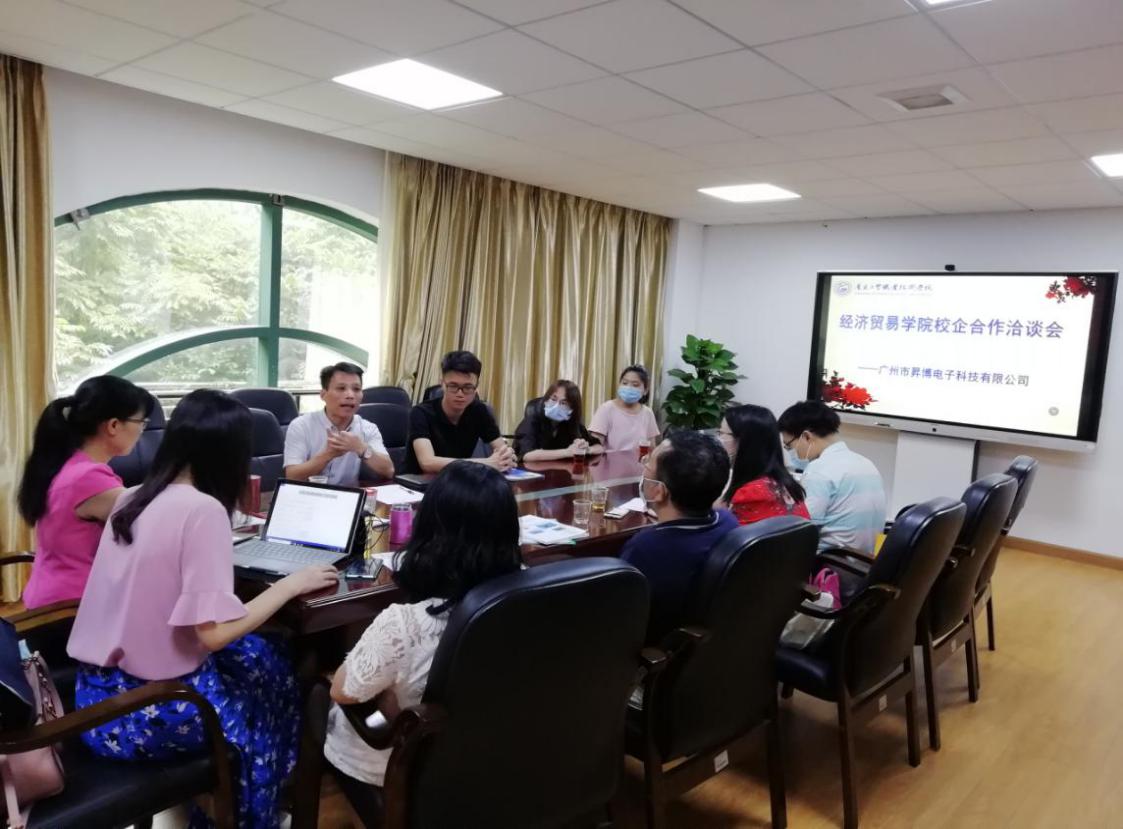 为推进我院校企合作建设进一步开展,2020年7月1日下午,由广州市昇博电子科技有限公司董事长廖振雄等4人组成的企业访问代表到访新葡的京官网,经贸学院院长邱秀芳教授、副院长方洁教授、办公室主任邓彩云、商贸系主任蒋晶、营销系主任严琳、国际贸易专业带头人李政敏、电子商务专业带头人方文超一起参加了交流,双方就校企合作工作进行了热烈的洽谈。