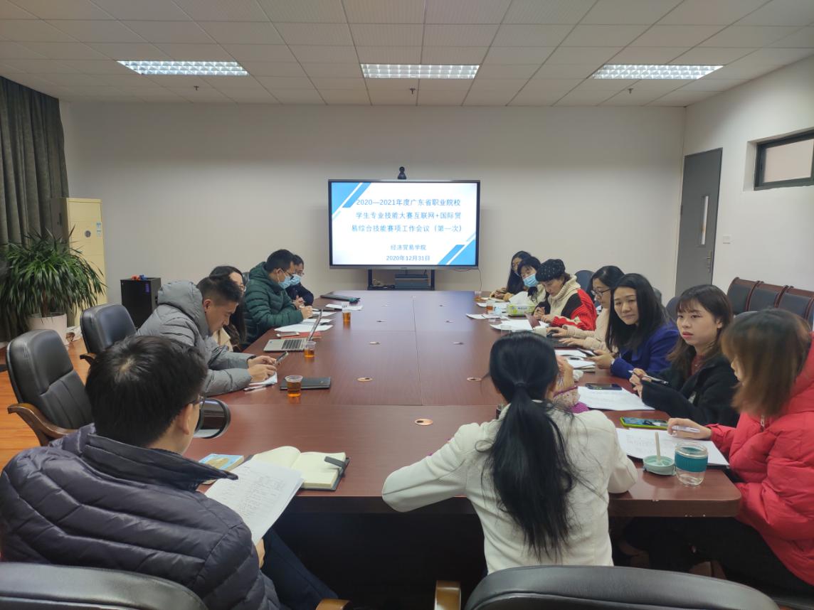 2020年12月31日上午,2020-2021年度广东省职业院校学生专业技能大赛“互联网+国际贸易综合技能”赛项承办工作第一次会议在新葡的京官网白云校区明德楼1-308召开。经济贸易学院党总支书记李繁、院长邱秀芳、党总支副书记龚云、副院长蒋晶及相关工作组人员参加了会议。
