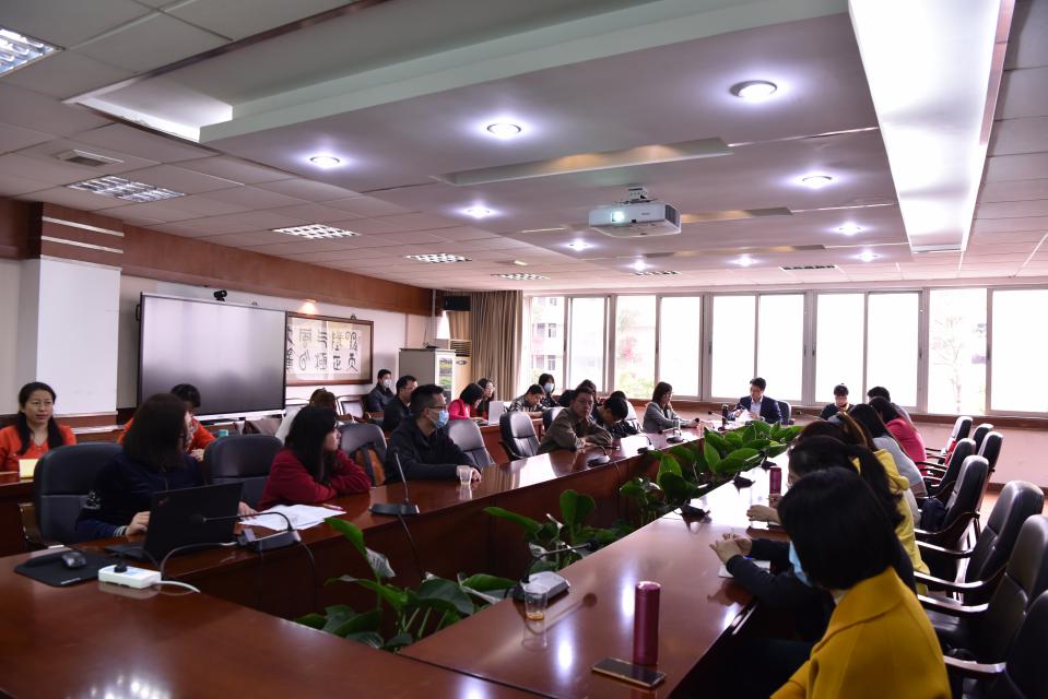 为做好开学初各项工作,2月28日下午,经济贸易学院2020-2021学年第二学期全体教职工大会在天河校区中心会议室召开。学院党总支书记李繁、院长邱秀芳、党总支副书记龚云、副院长蒋晶,两系、两办主任及全体教职工参加会议。会议由李繁同志主持。