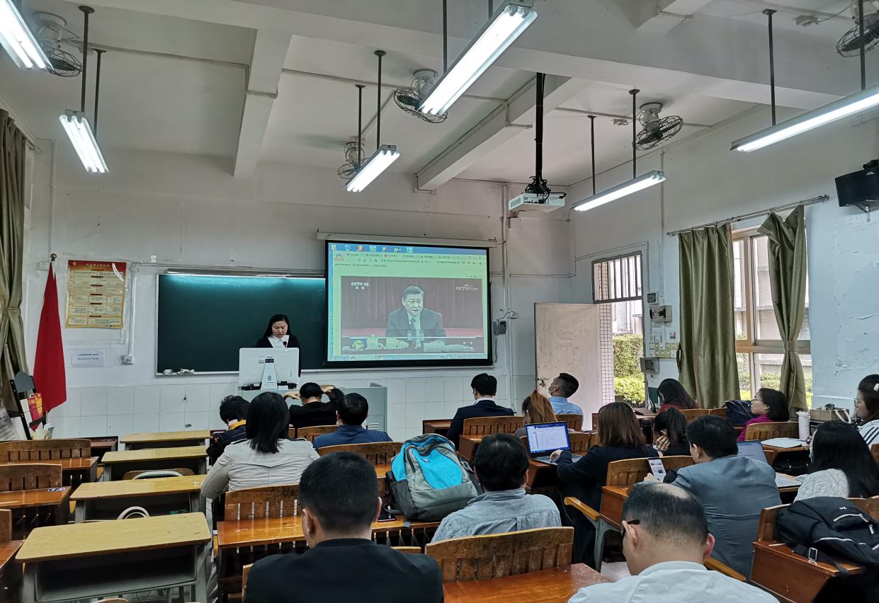 2021年3月9日下午,经济贸易学院在天河校区召开全体教职工座谈会,学习习近平总书记看望全国政协十三届四次会议的医药卫生界、教育界委员并参加联组会时的重要讲话精神。会议由学院办公室主任邓彩云主持。