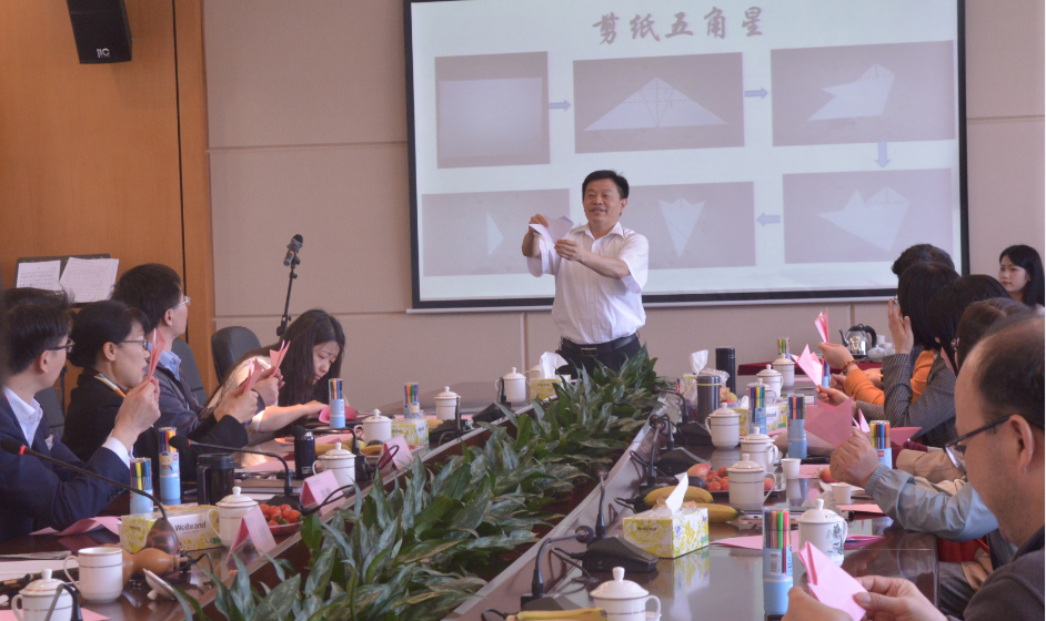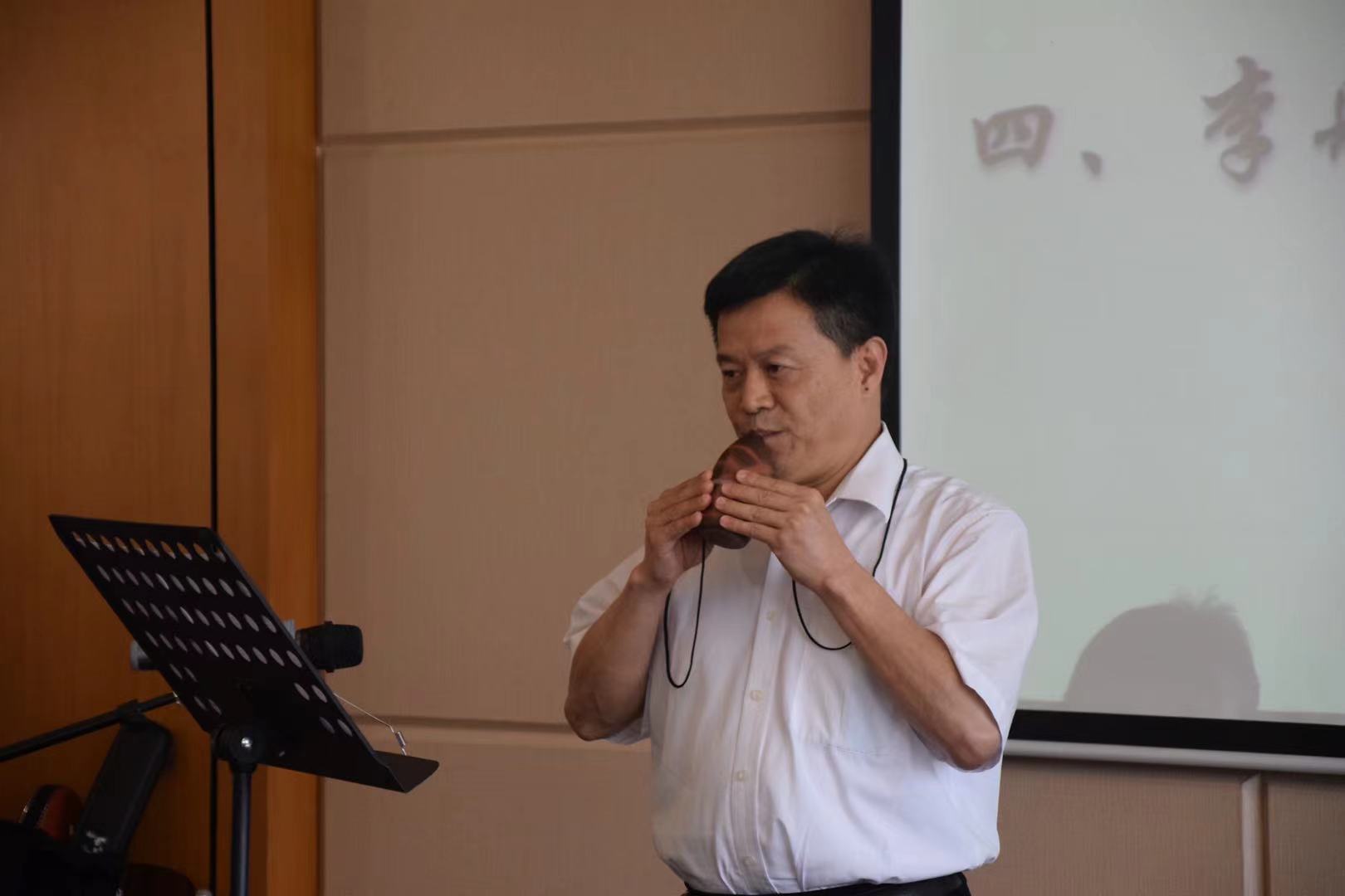 闻韶班主讲李艇教授详细地介绍了闻韶班的教学理念、教学设计、教学安排、教学方法和教学评估等,讲解和演奏了来自7000年前全世界最古老的乐器——埙,以及少数民族常见乐器——葫芦丝,并带领大家一起体验了中华国粹——“剪纸”和“画京剧脸谱”活动,现场气氛达到了高潮。今年是建党一百周年,李挺教授特意以党史小故事为引子,为大家教授“一颗红星”和“天安门”的剪纸方法,既开展了党史学习教育,又传承了优秀传统文化。