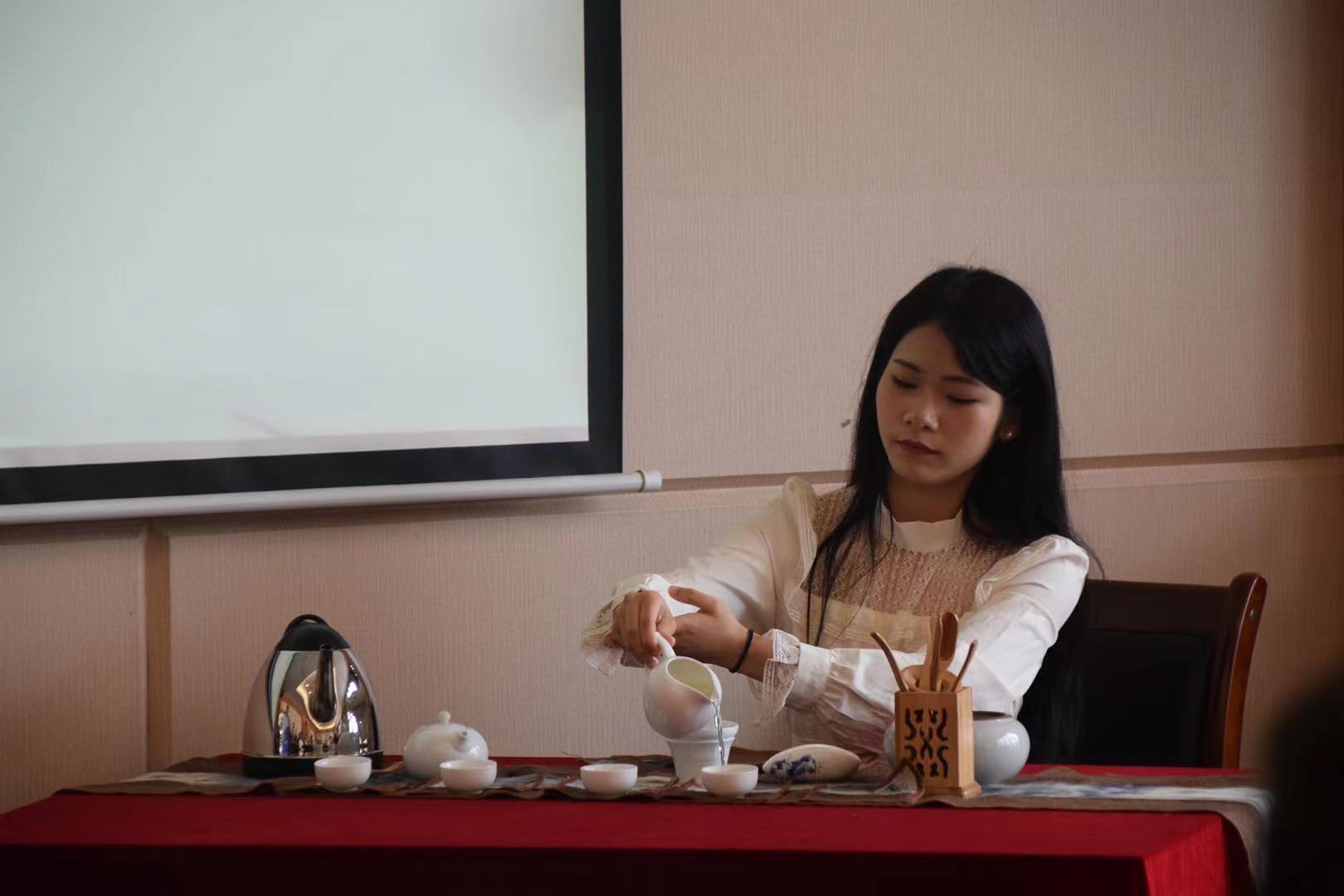 伴随着清脆的琵琶声和主持人细腻的解说,茶艺表演在众人的期待中徐徐展开。表演茶艺的同学端坐在古色古香的茶桌前,轻轻端起一盏精致的茶壶,倒水、冲茶,优雅的动作尽显美态,让人如痴如醉。茶艺是一种中华传统文化。在十大国粹中排第六.茶艺在中国优秀文化的基础上又广泛吸收和借鉴了其它艺术形式,并扩展到文学、艺术等领域,形成了具有浓厚民族特色的中国茶文化。