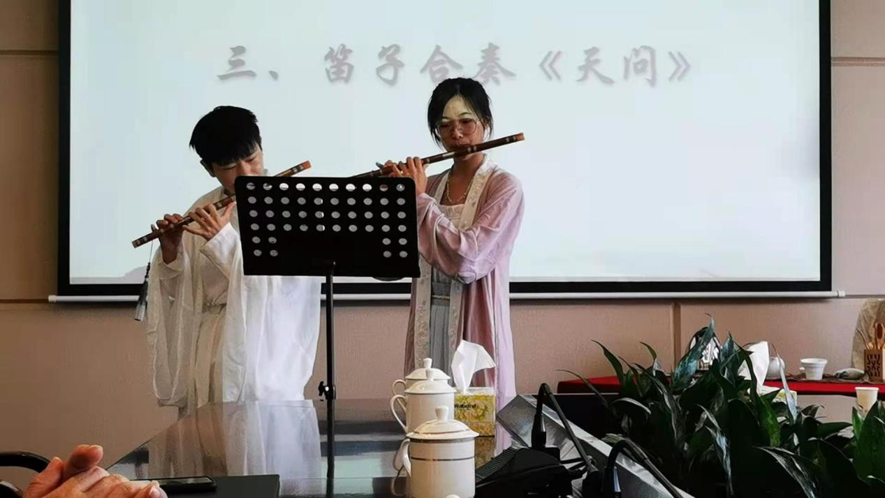 一曲笛子合奏《天问》悠然响起,闻韶班两位同学的表演把在场观众带入了刀光剑影的江湖,沉浸在那种纵横江湖的潇洒恣意。更让人惊叹的是,这两位同学之前是笛子演奏零基础者,进入闻韶班以后才开始接触笛子,在短短的18周课时,学有所成。