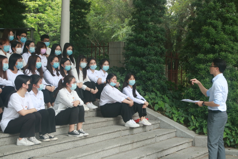 在烈士陵园内,李繁就地给学生党员们上了一门生动的书记第一课,他讲述了周文雍与陈铁军在刑场上举行的一场特殊的婚礼:刑场是他们结婚的礼堂,反动派的枪声是他们新婚的礼炮!进而引出了李大钊、方志敏、夏明翰等革命先辈的英雄事迹,感悟他们舍生忘死、视死如归的革命精神和高尚情怀,重温了遵义、延安、井冈山、西柏坡等革命圣地的红色历史,教育党员们从党的光辉历史中汲取砥砺奋进的精神力量。李繁表示:历史是最好的教科书,也是最好的清醒剂。在前进的征程上,我们要坚持社会主义道路,坚持党的领导,坚持和平发展。