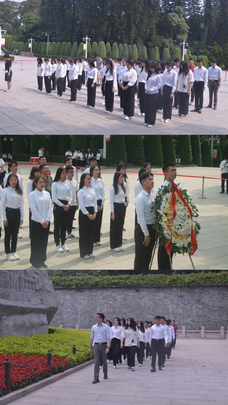 “起来!不愿做奴隶的人们......”师生党员们怀着无比崇敬的心情来到纪念碑前,神情严肃,用歌声缅怀先烈。随后,集体默哀三分钟,默哀毕,两名学生党员抬起花圈缓步登上纪念碑基座,将花圈轻轻放下,全体师生党员向纪念碑鞠躬致敬,并缓步绕纪念碑进行瞻仰,深切缅怀英勇牺牲的革命先烈,表达对他们深深的敬意和无尽的哀思,纪念碑四周表现广州起义战斗过程的浮雕栩栩如生,仿佛将人们拉回到当年那惊心动魄,枪林弹雨的黑暗黎明的前夜。最后,在李繁的带领下,党员们在烈士纪念碑前鲜艳的党旗下重温入党誓词:“我志愿加入中国共产党,拥护党的纲领......随时准备为党和人民牺牲一切,永不叛党!”慷慨激昂的誓词再一次震撼着党员们的心,提醒党员们不忘历史,坚守初心和使命。入党誓词,是党员对党和人民做出的庄严承诺,一代又一代中国共产党人,面对鲜红党旗,右手握拳,一字一句许下铮铮誓言。