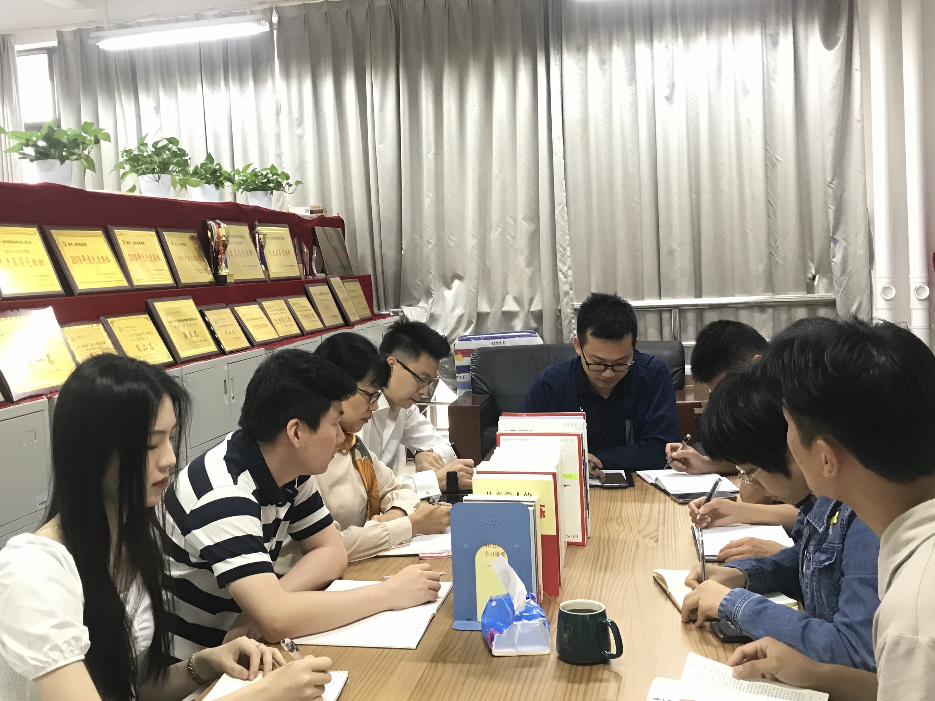 4月26日上午,经贸学院党总支在晨习会上开展了“学史知史、立德力行”党史学习教育系列活动。全体行政人员参加,晨习会由辅导员章少重主持。