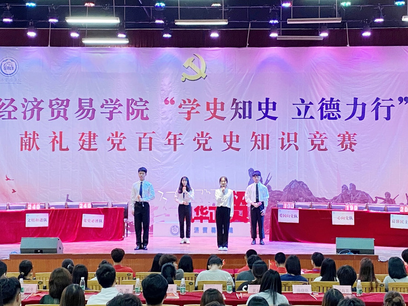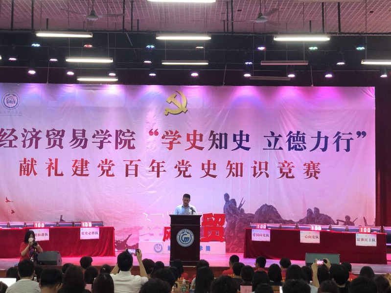 为庆祝中国共产党成立100周年,回顾党的光辉历程,营造学党史、知党情、跟党走的浓厚氛围,深入推进党史学习教育,经贸学院党总支于5月13日在演艺厅举办“学史知史,立德立行”党史知识竞赛。学校党委委员、副校长唐毓秋,经贸学院党总支书记李繁,经贸学院副院长蒋晶,经贸学院总支组织员、办公室主任邓彩云,学工办主任黄小奇及学院辅导员参加了活动。