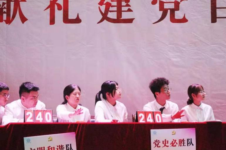 活动经过初赛比拼,共有6支队伍进入决赛,设置必答题、抢答题,题目形式多样,包括文字题,听歌猜歌名。竞赛现场气氛严肃激烈,参赛队伍精神饱满,相互配合,答题过程中记录要点、按抢答器、举答题牌、翻记分牌等动作一气呵成,体现了极高的团队协作精神,赛出了过硬的党史理论知识和良好的精神风貌。
