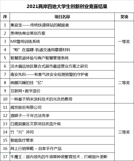 获奖名单