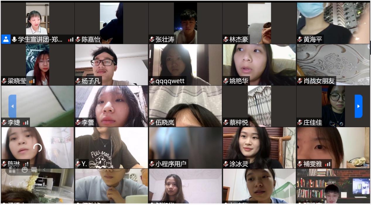 8月16日晚上,校学生党史宣讲团成员郑钰美同学在经贸学院20营销6班开展线上党史宣讲活动,学习了习近平总书记在庆祝中国共产党成立100周年大会上的重要讲话精神和延安精神,全体同学参加了学习,受益颇深。