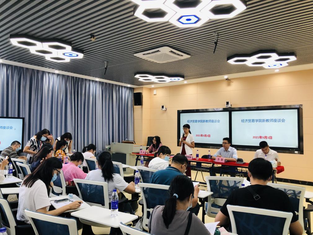 为学习贯彻习近平总书记的“七一”重要讲话精神,让新老师感受经贸学院大家庭的温暖,同时保证每位教师在最合适的岗位上最大限度发挥自身的专业能力,经贸学院于2021年9月3日下午,在白云校区组织召开新教师座谈会。经贸学院领导班子李繁、邱秀芳、龚云、蒋晶、两办主任、相关行政人员及全体新教师出席会议,会议由院长邱秀芳主持。