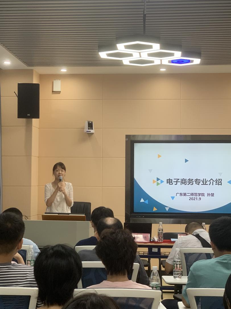 专业介绍会上,广东第二师范学院电子商务专业系主任孙楚向同学们作了专业介绍的报告,她从专业背景、专业特色、课程体系、毕业要求等多个角度进行了详细深入的介绍。