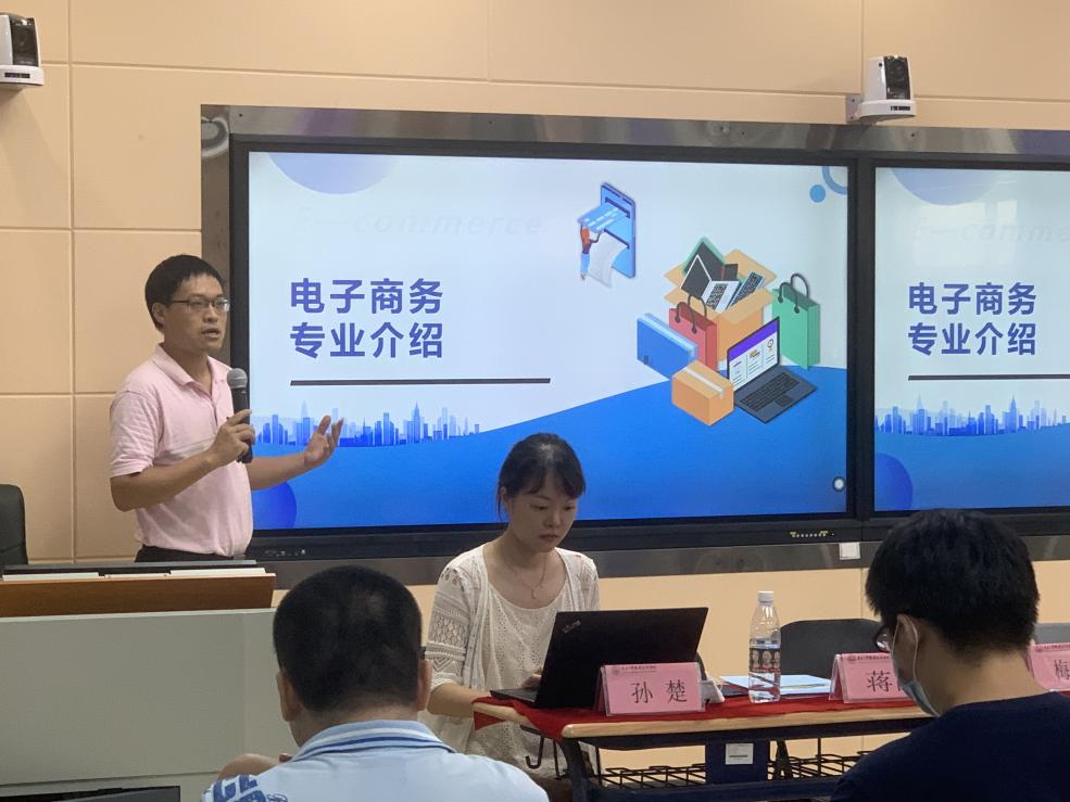 经济贸易学院电子商务专业带头人方文超向同学们介绍了学院电子商务专业发展情况,尤其在“十三五”期间电子商务专业所取得的成果。