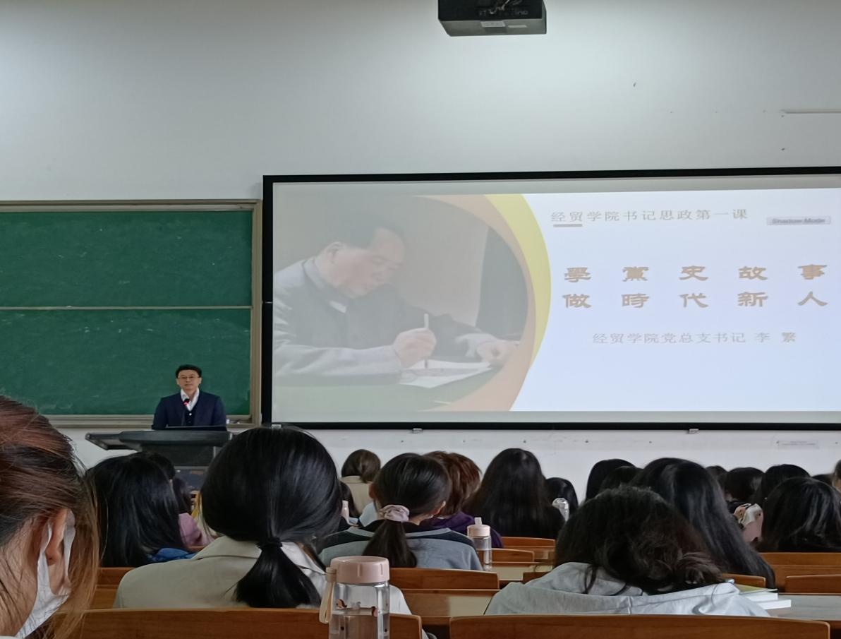 为贯彻落实习近平总书记“七一”重要讲话精神,按照学校党委统一部署,2021年10月22日上午,经济贸易学院党总支书记李繁为2021级国际经济与贸易专业新生精彩讲授了“学党史故事,做时代新人”的思政第一课。