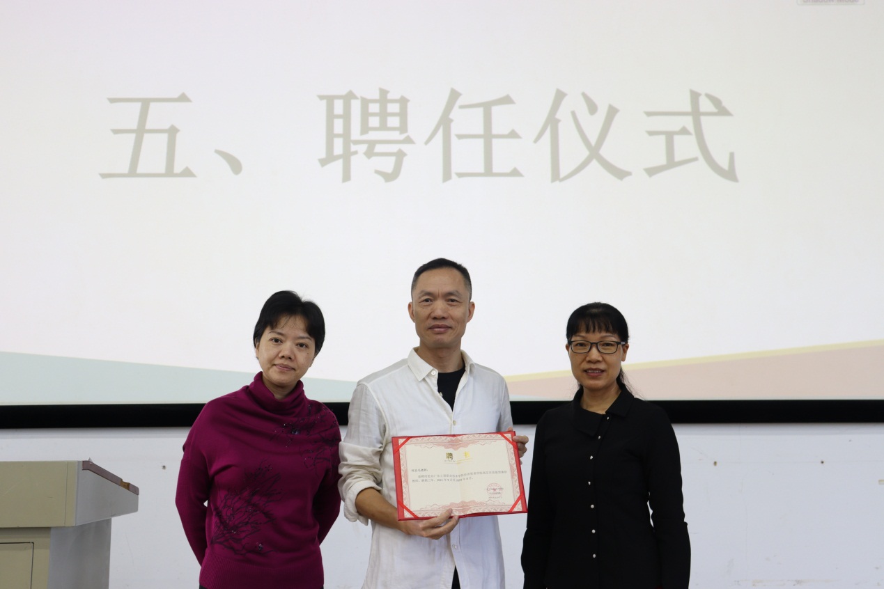 讲座最后,学院院长邱秀芳将新的聘任证书颁发给了何志毛老师,经济贸易学院继续聘任何志毛老师为市场营销专业高层次技能型兼职教师。