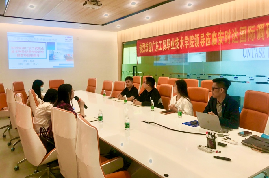 为深度开展校企合作、推动产教融合、落实专业对接产业的目标,进一步提高新葡的京官网国际经济与贸易专业学生的实践能力,2021年11月4日,在经贸学院副院长、专业带头人蒋晶带领下,商贸系主任张莉老师、国贸专业曹倩老师、游秋杨老师共同参加广州安时达国际供应链有限公司的调研。