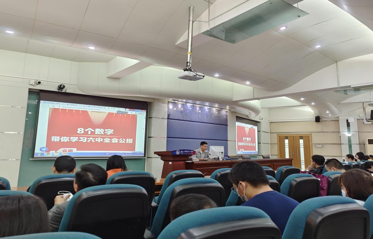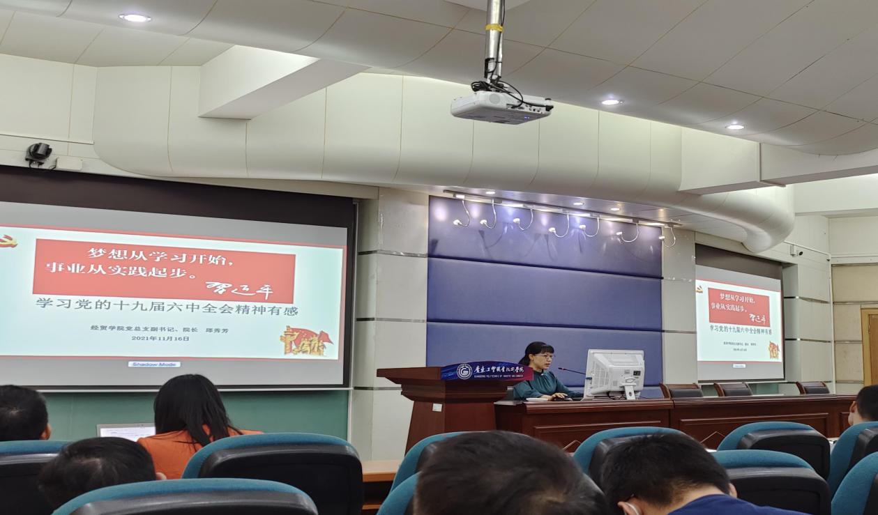 根据学校《关于组织学习党的十九届六中全会精神的通知》的文件精神,11月16日,经济贸易学院在天河校区报告厅召开全体教职工大会,组织全体教职工开展党的十九届六中全会精神专题学习。会议由学院党总支书记李繁主持。
