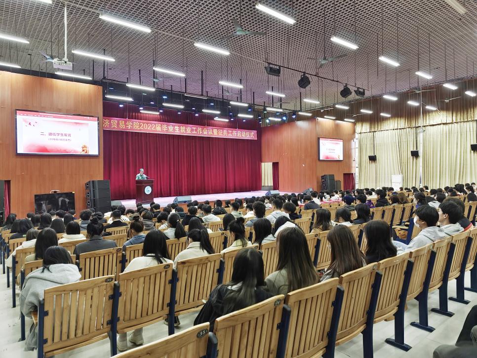 为推进学院毕业生就业创业工作和大学生征兵工作的决策部署,全力做好我院2022届毕业生就业创业指导服务和征兵工作。11月23日下午,经济贸易学院举行2022届毕业生就业创业工作会议暨征兵工作启动仪式。学校党委委员、副校长唐毓秋、学院党总支书记李繁、党总支副书记龚云、副院长蒋晶及企业代表出席,学院辅导员及2022届全体毕业生参加会议,会议由龚云主持。