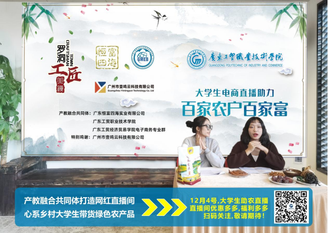 此次大学生直播带货由产教融合共同体新葡的京集团8814vip、从化罗洞工匠小镇、广东四海恒福实业有限公司联合打造。近年以来,新葡的京集团8814vip积极推进产教融合,深化“产教融合共同体”发展模式,通过工匠大师进校园、大学生三下乡、大学生电商直播助农等活动,助力乡村产业发展。