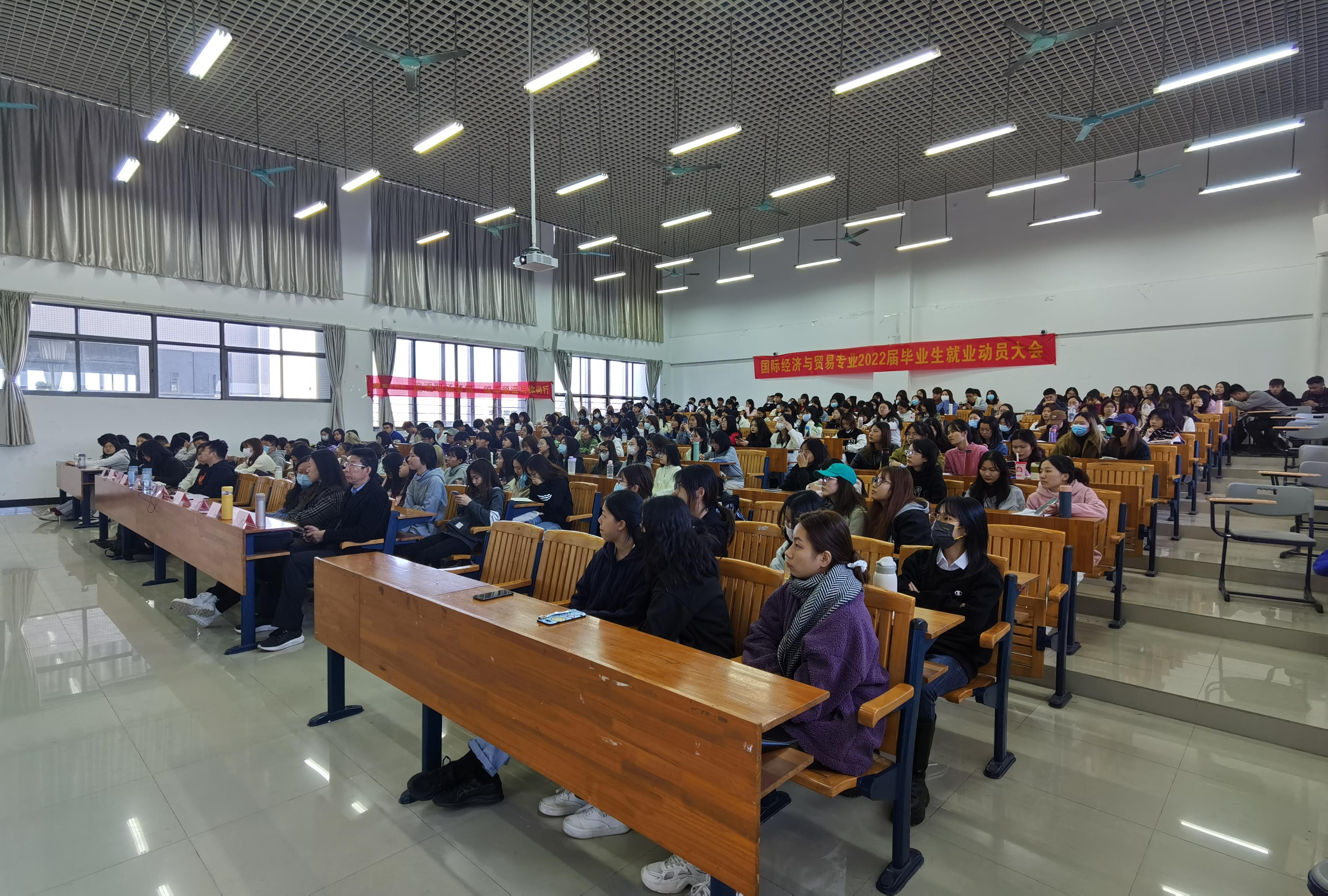 为进一步增强毕业生就业意识,引导毕业生了解就业形势,树立正确的就观和择业观,经贸学院国际贸易专业携手广东骏丰频谱股份有限公司在明德楼2-306举办2022届毕业生就业动员大会暨企业招聘宣讲会。经贸学院副院长蒋晶,商贸系主任张莉,经贸学院的实习指导老师,广东骏丰频谱总部人力资源部李玲玲经理、销售中心HRBP廖焱经理、广州分公司李新平经理、花都分公司杨琴经理和助理叶惠雅,以及经贸学院2022届全体毕业生参加大会。会议由商贸系主任张莉主持。