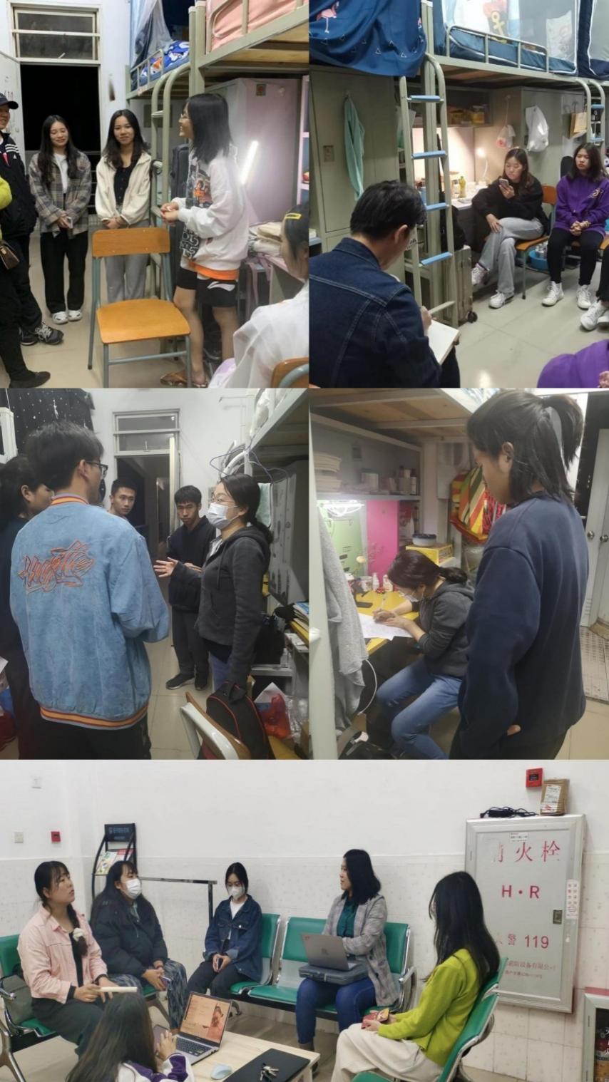 在校领导和相关部门领导的指导下,经贸学院积极贯彻学校“学生成长导师制”育人新模式,扎实开展“专任教师、辅导员晚值班深入学生宿舍走访”专项行动,为同学们解决生活和学习上的各类问题,将关心和关爱送到学生“枕边”。