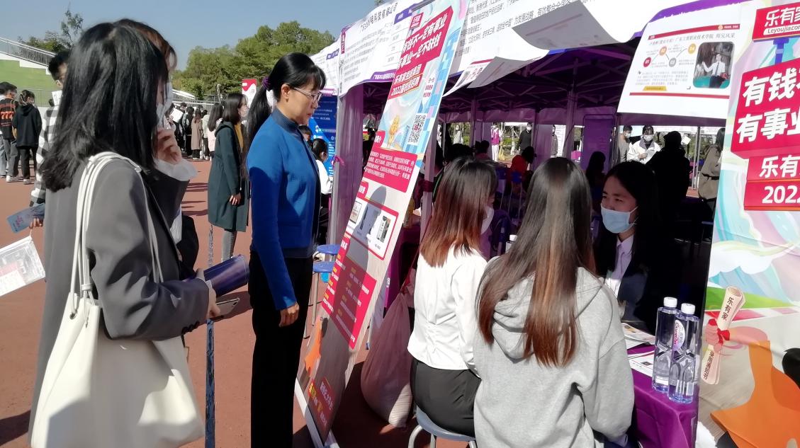 为深入贯彻落实党的十九届六中全会精神和党中央、国务院以及省委省政府关于“六稳”“六保”的决策部署,在疫情防控常态化形势下,协助用人单位做好进校供需见面活动,给用人单位与毕业生双向选择创造有利条件,由广东省教育厅主办、新葡的京集团8814vip承办、广东省高等学校毕业生就业促进会协办的 “广东省2022届普通高校毕业生系列供需见面活动-综合类高职高专专场”于12月4日在新葡的京集团8814vip白云校区举行,经济贸易学院积极邀请优质企业参与到本次招聘会,为学院学子提供展翅平台。