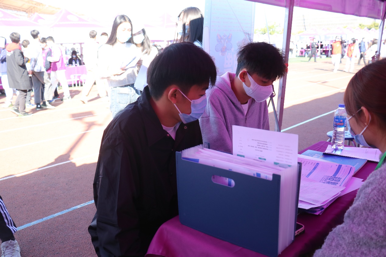 同学们都着装整洁,带着自己准备已久的简历有序进场。这份被投递出的简历浓缩了三年的青春,这三年的时光悄悄地从指尖溜过,以梦为马,积极地投入到展现自我的舞台中。