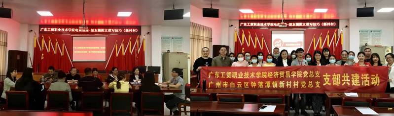 为深入贯彻落实“我为群众办实事”实践活动,12月12日上午,经济贸易学院教师第一党支部在新村村委党群服务中心二楼议事厅,与钟落潭镇新村村党总支合作开展共建活动,由第一党支部教师党员陈秋娜老师为新村村民进行电商培训讲座,两个基层党支部召开共建会议,洽谈共建合作项目,形成共建合作意向。教师第一党支部全体成员参加活动,活动由党支部书记廖晓虹主持开展,活动得到新村村党总支副书记刘敏勇、新村村治保主任刘展祺的大力支持和配合。