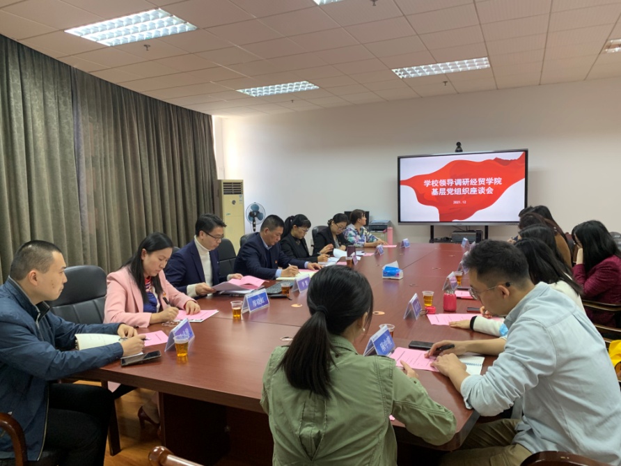 12月14日下午,学校党委委员、副校长唐毓秋来到白云校区明德楼1区308,与经济贸易学院党总支支委、教师第一党支部的全体党员进行座谈。会议由经贸学院党总支书记李繁主持。