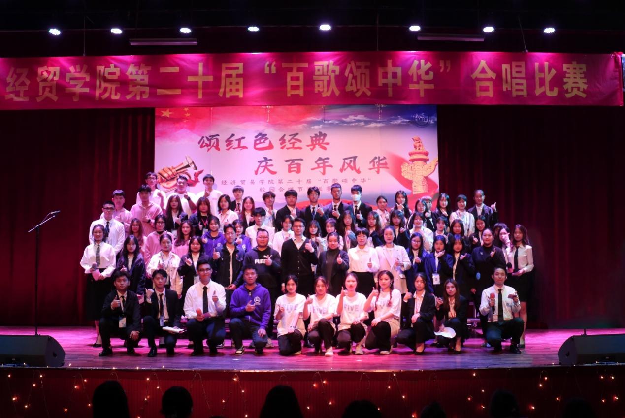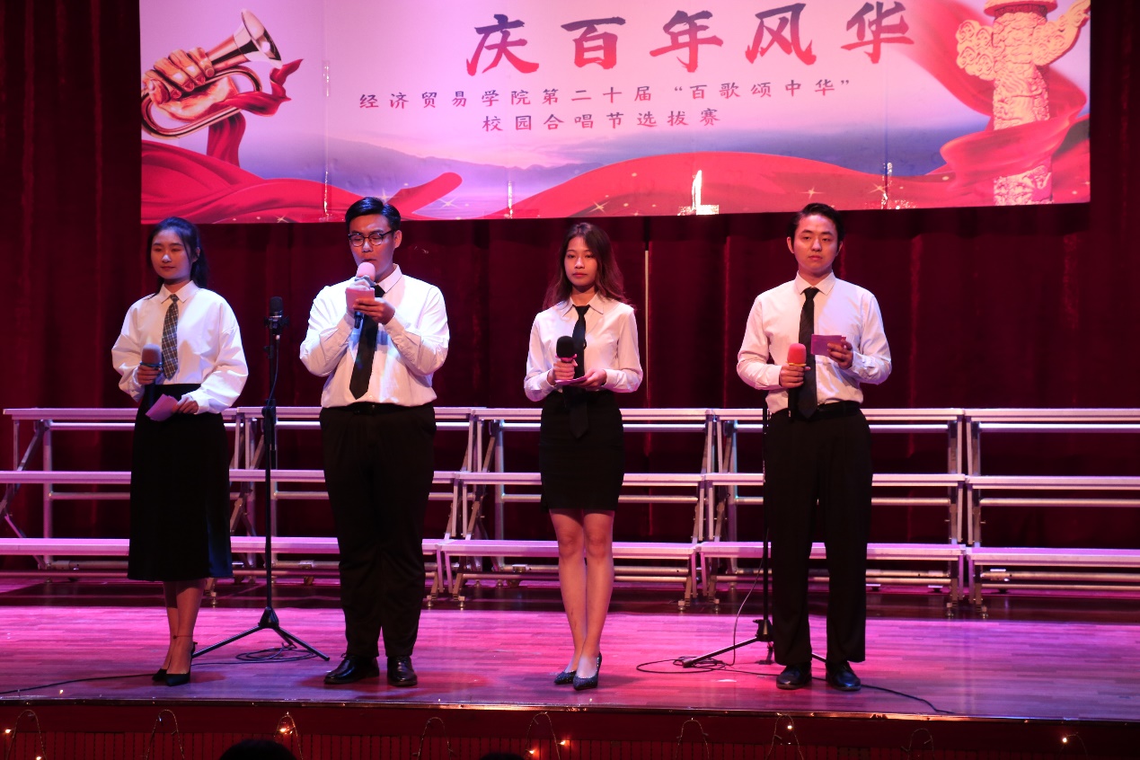 为了深入学习宣传贯彻习近平新时代中国特色社会主义思想和党的十九大精神,落实全国教育大会精神和全国全省高校思想政治工作会议精神,围绕立德树人核心,构建“三全育人”大思政格局,推动党史学习教育取得实实在在的成效,以实际行动献礼党的百年华诞。2021年12月15日下午,由经济贸易学院举办的第二十届“百歌颂中华”校园合唱节选拔赛在白云区演艺厅里隆重举行。出席本次合唱比赛的嘉宾及评委有:经济贸易学院党总支书记李繁、学院学工办全体老师、学院第十五届团委、学生会、飞久音乐社代表等。