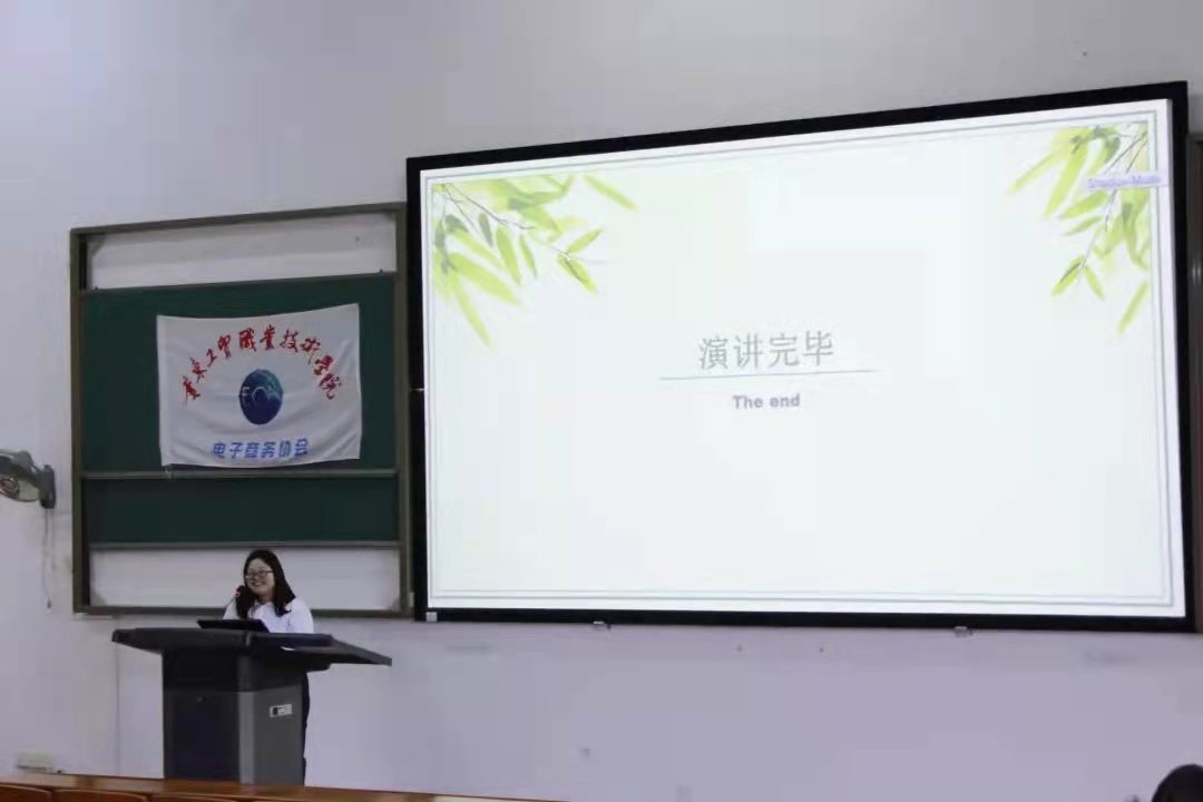 蒋晶、刘佳珺老师为本次比赛致辞,她们表示比赛可以扩大同学们的知识面,也给同学们一次很好的学习机会,提高同学们专业素养。随后比赛正式开始。商务参展,走向国际;商务风采,迈向未来。各小组都很好地展现了各自产品,并分析了产品的国际市场。